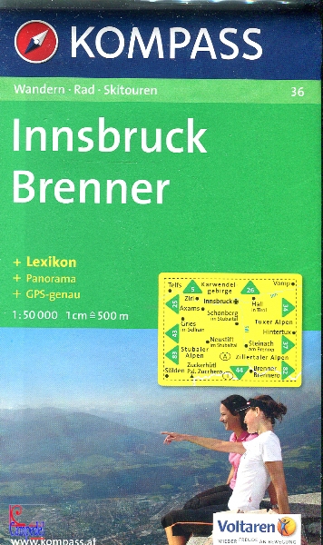 KOMPASS, Carta turistica 1:50000 n. 36 Innsbruck-Brenner