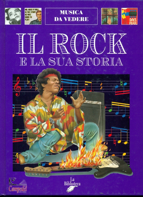 Questa doppia anima si incarna perfettamente in Elvis Presley "un bianco che cantava come un nero". Giovane e ribelle, il rock coinvolge presto la gioventù di tutto il mondo, accompagna i cambiamenti e le contestazioni della seconda metà del secolo, si fa cultura, diventa mercato e denaro. I suoi protagonisti sono Elvis (il re) e poi Chuck Berry, l'urlo mitico di Little Richard, il folck rock della chitarra di Bon Dylan, la swining London dei Beatles, la "cattiveria" dei Rolling Stones, la generazione di Woodstock, il genio elettrico di Hendrix, fino a Bruce Springsteen, Michael Jackson, i gruppi e le star degli anni Novanta. | |