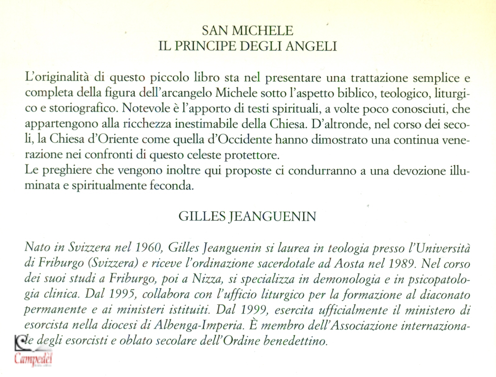Sommario 1 - La santità degli angeli 2 - Chi è san Michele? - Nell'Antico Testamento. - Nel Nuovo testamento - Le Feste - La liturgia 3 - San Michele negli scritti dei papi, dei santi e degli autori spirituali 4 - Culto e devozione a San Michele Arcangelo. 5 - Preghiere a San Michele Arcangelo