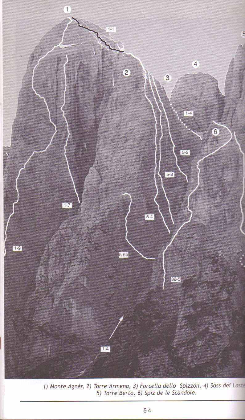 | - Dolomiti agordine - Agner - Croda Granda (Pale di San Martino) è la guida alpinistica completa dell'omonimo gruppo. Il volume raccoglie circa centocinquanta relazioni di sentieri, vie normali, ferrate e vie di roccia che si trovano nelle valli. sui pendii e sulle vertiginose pareti rocciose del gruppo. Contiene inoltre centinaia di schizzi relativi alle vie di roccia e alle traversate principali, una raccolta completa d'immagini delle cime del Gruppo riportanti i tracciati delle vie e la toponomastica completa di cime, forcelle, torri e canaloni. - Da uno scritto di Dino Buzzati. Nell'agordino, in fondo alla valle di S. Lucano, che è uno degli angoli più strani e impressionanti della terra, si erge con impeto pauroso - dal Fondovalle per contemplarla bisogna torcere la testa in su - l'architettura massima di tutte le dolomiti. E' il monte Agner, che incombe con un appicco di un chilometro e mezzo (e di fronte, appena dopo il torrente, più modeste ma non meno allucinanti, le muraglie delle pale di S. Lucano). La cima in fatto di statura non è un gran che, neppure 1900 metri. Ma quale altra cattedrale delle Alpi ha un abside simile? Quando fiammeggia nel tramonto e nel moto delle bianche nubi sembra innalzarsi lentamente, si stenta quasi a credere che una tale cosa possa esistere.(Dino Buzzati) | |