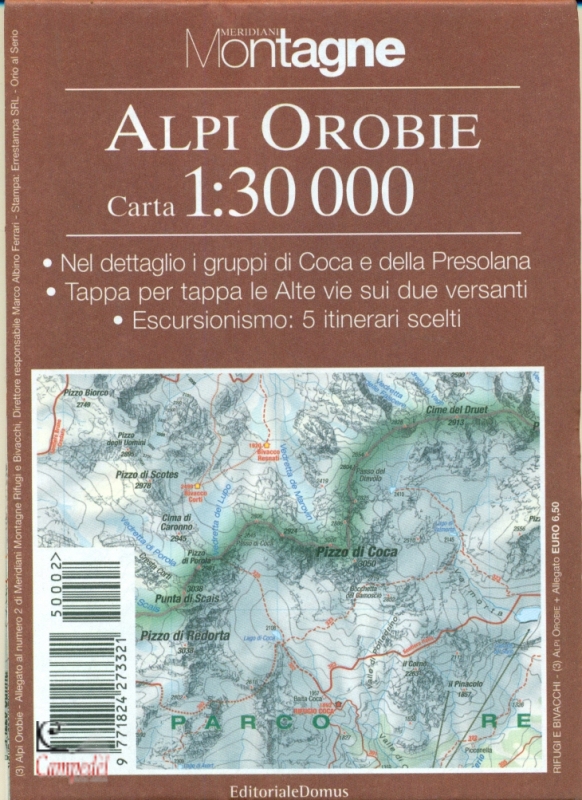 | Alpi Orobie carta 1:30.000 Nel dettaglio i gruppi di Coca e della Presolana Tappa per tappa le Alte vie sui due versanti Escursionismo: 5 itinerari scelti