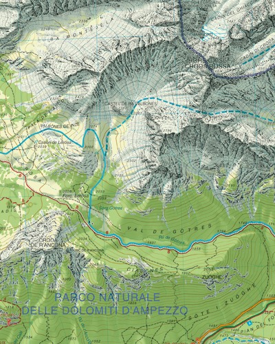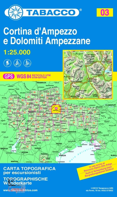 | Tofane Fanes Sennes Croda Rossa / Hohe Gaisl Cristallo Sorapiss Antelao Croda da Lago Nuvolau * Alta Via delle Dolomiti n. 1 Con reticolo chilometrico U.T.M. - GITTER / GPS WGS 84 | |