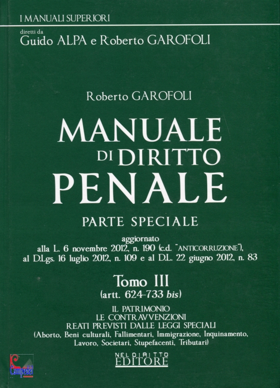 GAROFOLI ROBERTO, Manuale di diritto penale Parte speciale - Tomo 3º