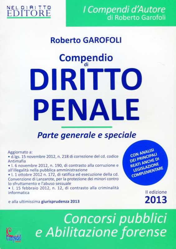 GAROFOLI ROBERTO, Compendio di diritto penale (generale e speciale)