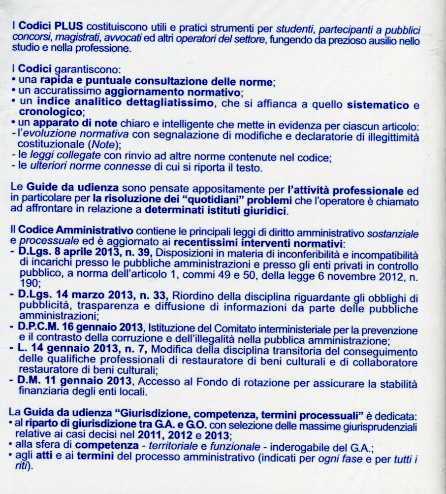 I Codici PLUS costituiscono utili e pratici strumenti per studenti, partecipanti a pubblici concorsi, magistrati, avvocati ed altri operatori del settore, fungendo da prezioso ausilio nello studio e nella professione