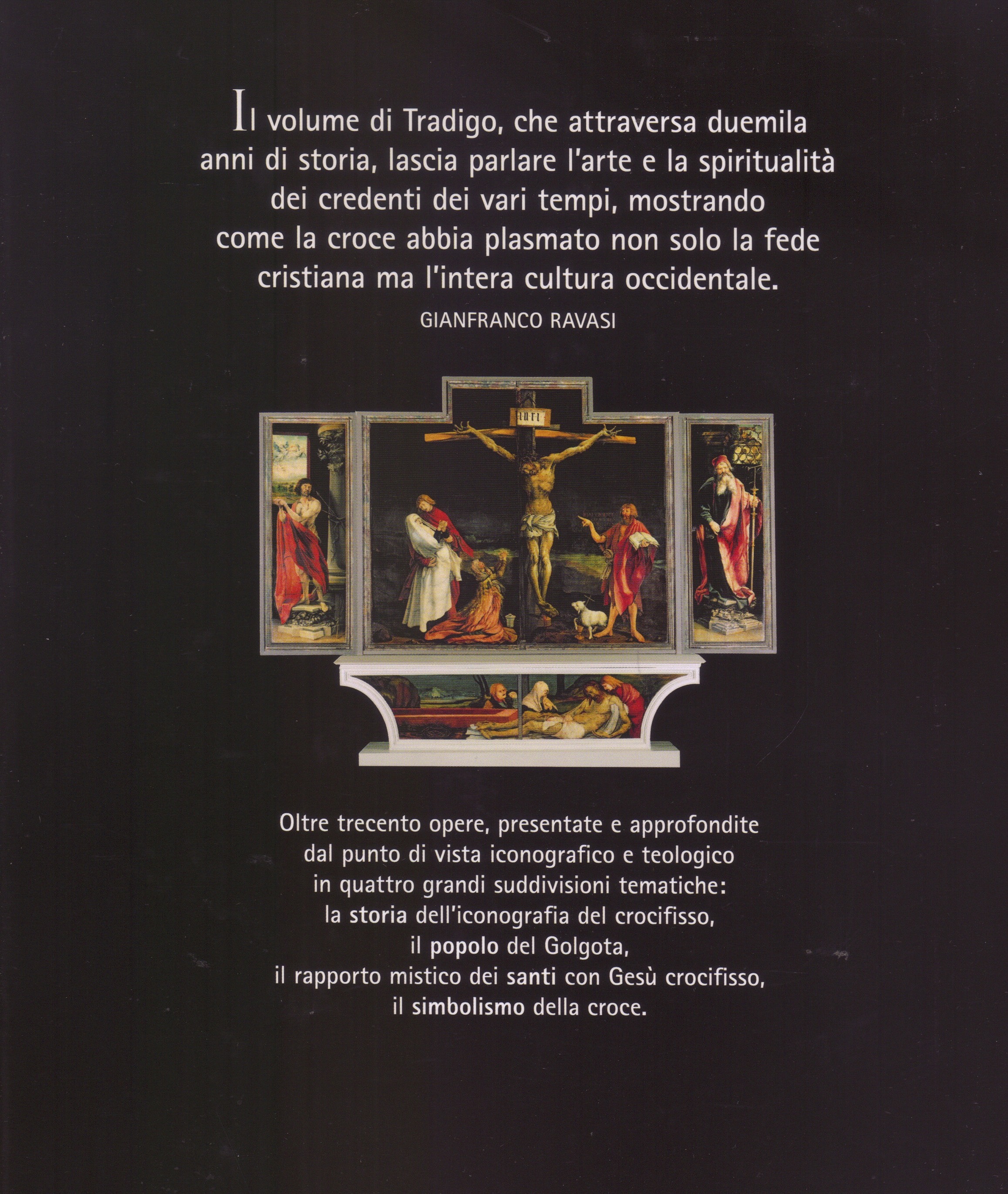 In oltre duemila anni di cristianesimo, pittori, scultori, orafi e incisori hanno contribuito con la loro arte e sensibilità religiosa a tenere viva nella memoria dei contemporanei l’immagine del crocifisso e della crocifissione. Tra le tante “prove d’autore” che il tempo ha conservato e i restauri hanno restituito al loro primitivo splendore abbiamo scelto oltre duecento opere, confrontandole e catalogandole poi dal punto di vista iconografico come teologico in quattro grandi suddivisioni tematiche: la storia dell’iconografia del crocifisso, il popolo del Golgota, il rapporto mistico dei santi con Gesù crocifisso, il simbolismo della croce. Il volume rappresenta per il lettore un’esperienza non solo estetica ma anche emotiva poiché viene accompagnato a scoprire nuovi significativi nelle opere presentate. Ogni soggetto artistico è messo in parallelo con testi di teologia, poesia e liturgia che ne aiutano la lettura. Le quattro parti del volume: Parte prima: La storia del Crocifisso; Parte seconda: L’umanità ai piedi del Golgota; Parte terza: L’abbraccio della Croce; Parte quarta: Il simbolo della Croce. «Il volume di Tradigo lascia parlare l’arte e la spiritualità dei credenti dei vari tempi, mostrando come la Croce abbia plasmato non solo la fede cristiana ma l’intera cultura occidentale». S.E. Card. Gianfranco Ravasi | |