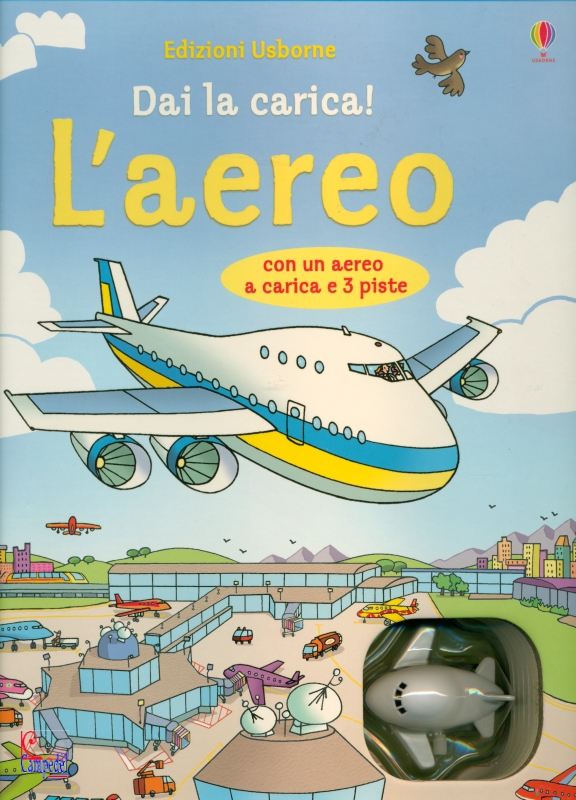 Un bel libro interattivo con tre piste incorporate e modellino aereo a carica da seguire al terminal