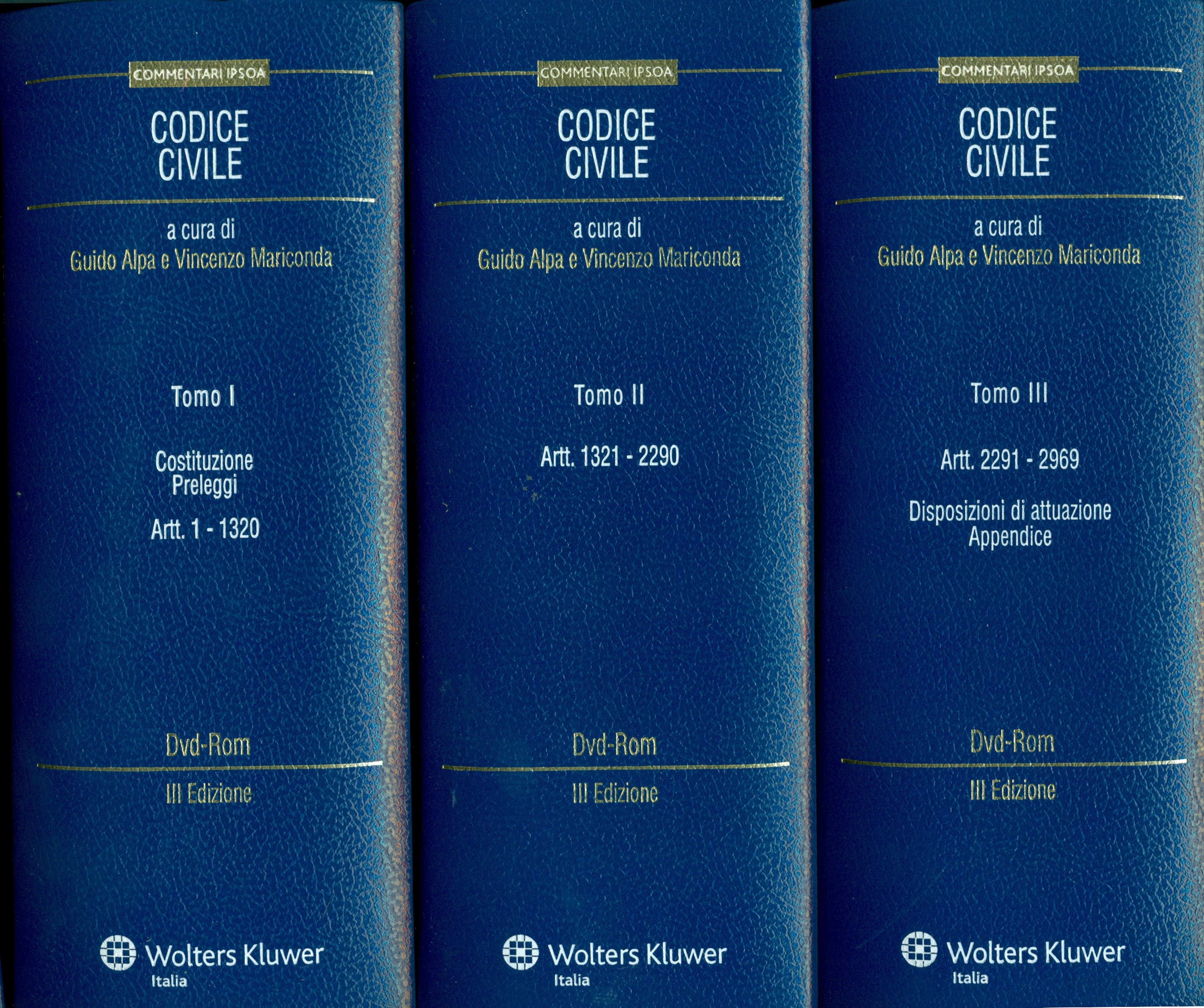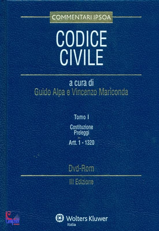 L’Opera, curata dal Prof. Guido Alpa e dal Prof. Vincenzo Mariconda, nasce dalla collaborazione ed esperienza di oltre 200 prestigiosi professori, magistrati, avvocati, notai e ricercatori. CONTENUTI L’Opera fornisce il commento articolo per articolo del Codice civile e delle Preleggi. Il Codice presenta l’impostazione propria dei Commentari Ipsoa: testo dell’articolo, commento d’Autore strutturato in sommario, paragrafi e sottoparagrafi, con la relativa bibliografia di riferimento. Le pa role-chiave in neretto garantiscono una facile consultazione. Completa l’Opera un dettagliato indice analitico. DVD ROM Il Dvd Rom allegato assicura la completezza dei contenuti dell’Opera cartacea (testo dell’articolo, sommario con link ai commenti e bibliografie). Fornisce, inoltre, le correlazioni alle massime di giurisprudenza relative ai singoli articoli e garantisce piene funzionalità di ricerca (per articolo e full text), rendendo agevole ed immediata la consultazione. In aggi unta, tramite link ipertestuali, è possibile accedere alle norme citate nei commenti. AGGIORNAMENTO L’Opera è aggiornata da ultimo con: • L. 9 agosto 2013, n. 99, di conversione del D.L. n. 76/2013, c.d. “decreto lavoro” • L. 9 agosto 2013, n. 98, di conversione del D.L. n. 69/2013, c.d. “decreto del fare” • L. 11 dicembre 2012, n. 220, “riforma del condominio” • L. 10 dicembre 2012, n. 219, sul riconoscimento dei figli naturali • D.Lgs. 11 ottobre 2012, n. 184 di attuazione della direttiva 2010/73/UE, recante modifica delle direttive 2003/71/CE, relativa al prospetto da pubblicare per l’offerta pubblica o l’ammissione alla negoziazione di strumenti finanziari, e 2004/109/CE sull’armonizzazione degli obblighi di trasparenza riguardanti le informazioni sugli emittenti i cui valori mobiliari sono ammessi alla negoziazione in un mercato regolamentato • D.Lgs. 22 giugno 2012, n. 123, di attuazione della direttiva 2009/109/CE, relativa agli obblighi in materia di relazioni e di documentazione in caso di fusioni e scissioni. L’Opera sarà consultabile ne La Mia Biblioteca la prima biblioteca professionale on-line totalmente personalizzabile e modulabile sulla base delle specifiche esigenze. Grazie ad un sistema di ricerca evoluto, è possibile consultare le pagine d’interesse del Codice, raffinare la ricerca, creare note, salvare il documento, stamparlo e molto altro ancora. Pagine 12.000 | |