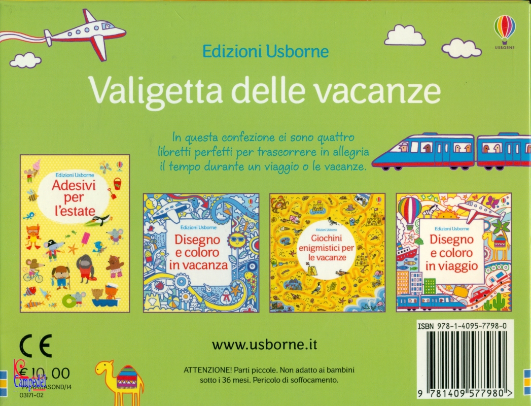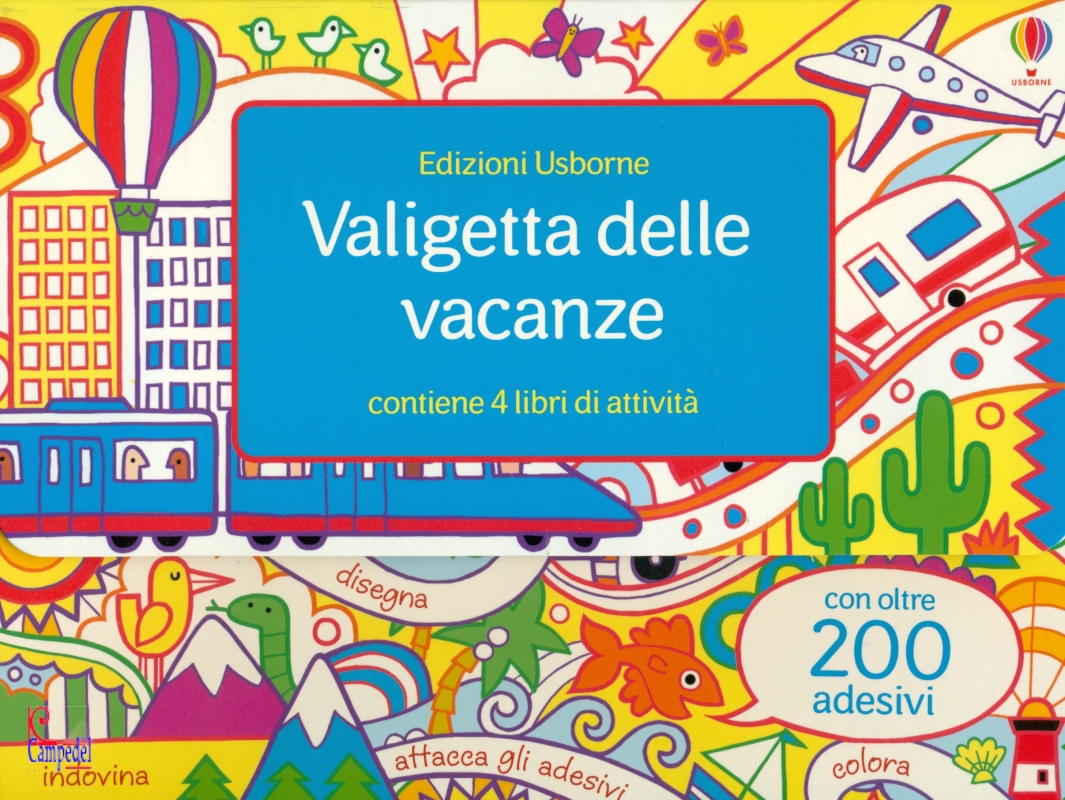 Quattro volumetti da portare in vacanza, riuniti in una pratica valigetta per disegnare, colorare...