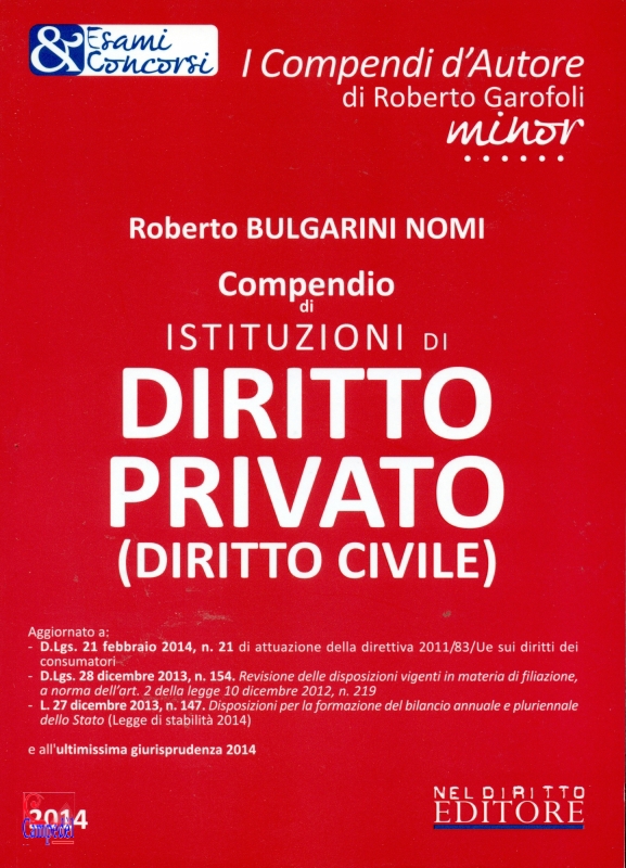 BULGARINI NOMI ROBER, Compendio di istituzioni di diritto privato civile