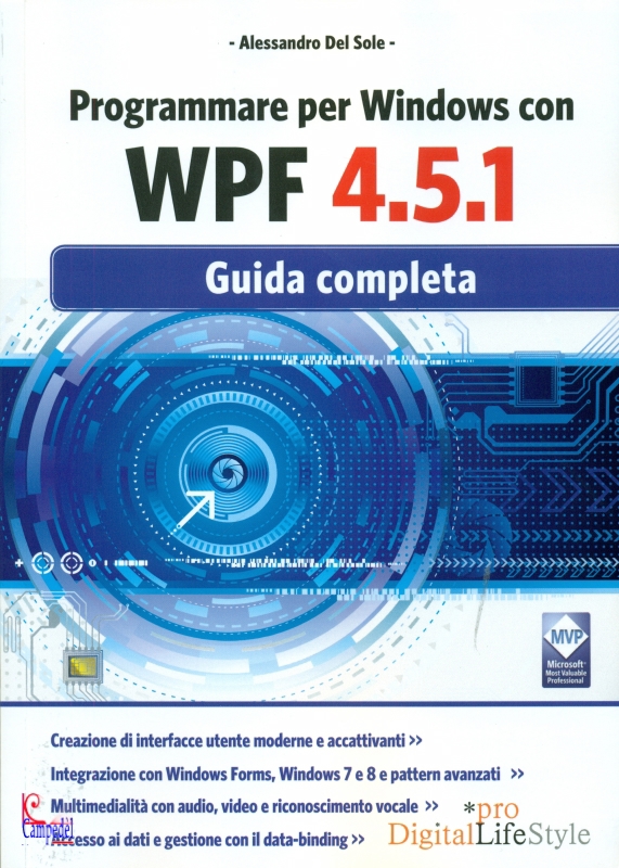 L’enorme diffusione di dispositivi mobili, quali smartphone e tablet, ha portato, dal punto di vista delle risorse formative sullo sviluppo software, a mettere da parte un’area invece più che mai attiva, costituita dalle postazioni desktop in azienda e dalle applicazioni per Windows nella loro naturale evoluzione orientata a Windows 7 e 8. Con l’obiettivo di colmare questa importante lacuna, questo volume si propone di svelare in ogni dettaglio l’ultima versione di Windows Presentation Foundatio n, la piattaforma applicativa Microsoft per lo sviluppo di applicazioni moderne per Windows, dove per moderne si intende sia arricchite da interfacce grafiche accattivanti e multimediali sia dotate di grande potenza nella gestione di dati e documenti. Il tutto in Visual Studio 2013, l’ultima versione del più famoso, diffuso e potente ambiente di sviluppo che, anche per la piattaforma trattata, introduce significative novità a livello di produttività. Pur se diretto a una platea di sviluppatori che hanno già una buona infarinatura del .NET Framework, il volume parte dai fondamenti della piattaforma fino a sviscerare, con taglio pratico e orientato al mondo reale, tutti gli aspetti più importanti, passando per . Infine, opportuni cenni vengono dati al fatto che, padroneggiando la piattaforma descritta nel libro, si è già a metà dell’opera nell’imparare a sviluppare applicazioni per Windows Phone e Windows 8. | |