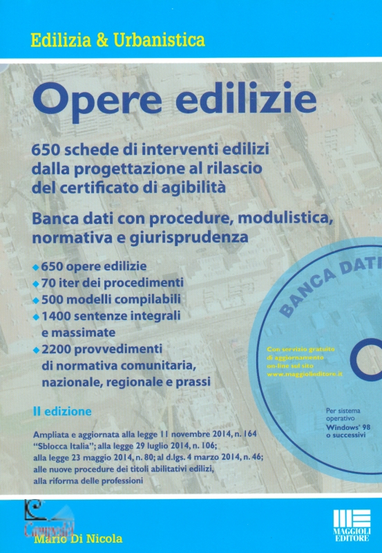 650 schede di interventi edilizi dalla progettazione al rilascio del certificato di agibilitą Banca dati con procedure, modulistica, normativa e giurisprudenza - 650 opere edilizie - 70 iter dei procedimenti - 500 modelli compilabili - 1400 sentenze integrali e massimate - 2200 provvedimenti di normativa comunitaria, nazionale, regionale e prassi II edizione Ampliata e aggiornata alla legge 11 novembre 2014, n. 164 "Sblocca Italia". alla legge 29 luglio 2014, n. 106. alla legge 23 maggio 2014, n. 80. al d.lgs. 4 marzo 2014, n. 46. alle nuove procedure dei titoli abilitativi edilizi, alla riforma delle professioni | |