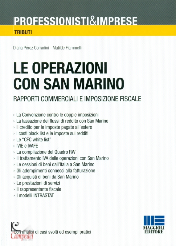 Sommario La Convenzione contro le doppie imposizioni La tassazione dei flussi di reddito con San Marino Il credito per le imposte pagate all’estero I costi black list e le imposte sui redditi Le “CFC white list” IVIE e IVAFE La compilazione del Quadro RW Il trattamento IVA delle operazioni con San Marino Le cessioni di beni dall’Italia a San Marino Gli adempimenti connessi alla fatturazione Gli acquisti di beni da San Marino Le prestazioni di servizi Il rappresentante fiscale I modelli INTRASTAT | |