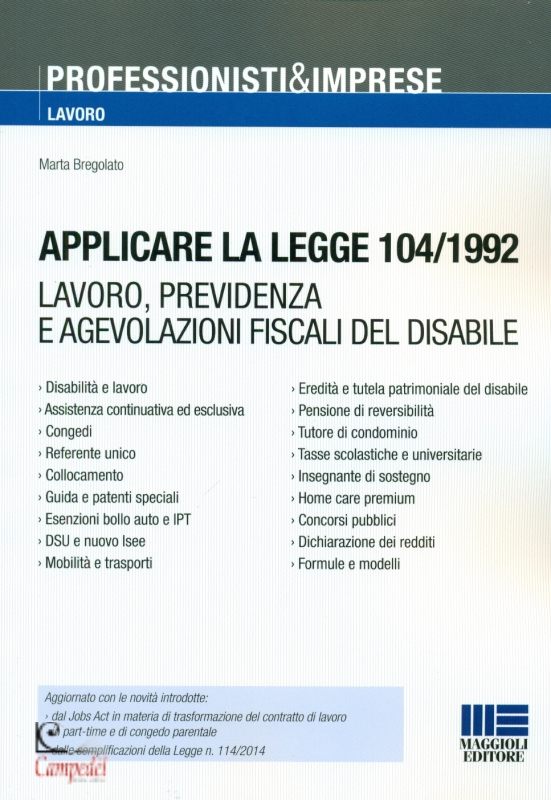 Sommario -Disabilità e lavoro - Assistenza continuativa ed esclusiva - Congedi - Referente unico -Collocamento -Guida e patenti speciali -Esenzioni bollo auto e IPT -DSU e nuovo Isee - Mobilità e trasporti - Eredità e tutela patrimoniale del disabile - Pensione di reversibilità - Tutore di condominio - Tasse scolastiche e universitarie - Insegnante di sostegno - Home care premium - Concorsi pubblici - Dichiarazione dei redditi - Formule e modelli Aggiornato con le novità introdotte: - dal Jobs Act in materia di trasformazione del contratto di lavoro in part-time e di congedo parentale - dal le semplificazioni della Legge n. 114/2014 Il testo è una guida pratica sull’applicazione della Legge n. 104/92, la Legge-quadro dedicata interamente alle persone affette da handicap, che delinea gli elementi fondamentali per l’individuazione dei diritti dei disabili, per favorirne l’integrazione sociale, per assicurarne l’assistenza e la tutela, per l’inserimento nel campo della formazione professionale e nell’ambiente di lavoro. Partendo dal tessuto normativo vigente – alla luce degli ultimi importanti aggiornamenti, che producono ora i primi effetti concreti – vengono presi in esame gli aspetti del rapporto di lavoro, quelli previdenziali e le agevolazioni fiscali previste in favore di talune categorie di soggetti, proponendo soluzioni ai quesiti più frequenti e accompagnando la trattazione con moduli e fac-simile per richieste. Uno strumento utile non soltanto a coloro che vivono in prima persona la disabilità, ma anche ai responsabili degli Uffici HR delle aziende e ai professionisti che devono fornire consulenze specifiche in questa delicata materia. L’edizione è aggiornata con: - il Decreto Legislativo approvato il 20 febbraio 2015 (Jobs Act) sulla riforma dei contratti di lavoro, che ha: introdotto la possibilità di trasformare il contratto di lavoro da full-time in part-time (orizzontale o verticale) per i lavoratori affetti da patolo gie oncologiche o da gravi patologie cronico-degenerative ingravescenti; - previsto novità in merito al congedo parentale e al suo prolungamento. la Legge 11 agosto 2014, n. 114 che ha modificato la Legge n. 104/92 a proposito di: - rivedibilità e status di invalido - certificati provvisori e agevolazioni lavorative - neomaggiorenni - patente e guida - parcheggi - concorsi e assunzioni nella Pubblica Amministrazione. Libri collegati Le novità sugli appalti Bar e gelateria Progettazione strutturale antisismica degli edifici | |