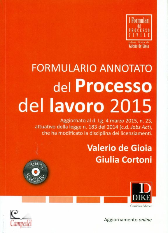 | Il formulario, aggiornato alle rilevanti novità apportate dal d. Lgs. 4 marzo 2015, n. 23, attuativo del Jobs act (contenente disposizioni in materia di contratto di lavoro a tempo indeterminato a tutele crescenti) che, a decorrere dal 7 marzo 2015,ha inciso profondamente sulla tutela spettante ai lavoratori in caso di licenziamento (riducendo la tutela reale, ossia i casi di reintegrazione nel posto di lavoro e limitando la portata applicativa del c.d. rito Fornero), offre all’avvocato i modelli di atto ne cessari per affrontare il giudizio del lavoro – anche nella fase monitoria e cautelare – in ciò aiutati dalle preziose e numerosissime annotazioni che spiegano le modalità di predisposizione degli stessi. Unico nel suo genere è il dettagliatissimo indice analitico-alfabetico che consente di individuare immediatamente la formule da utilizzare e gli istituti di riferimento. L’opera è completata da un utilissimo cd rom contenente gli atti in versione modificabile e da una password che ne consente, fino al dicembre 2015, un costante aggiornamento online. | |