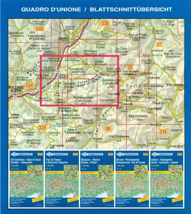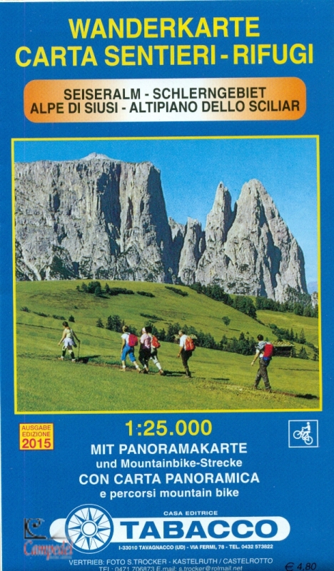 Alpe di Siusi Altopiano dello Sciliar Seiseralm-Schlerngebiet Panoramakarte und mountainbike-Strecke