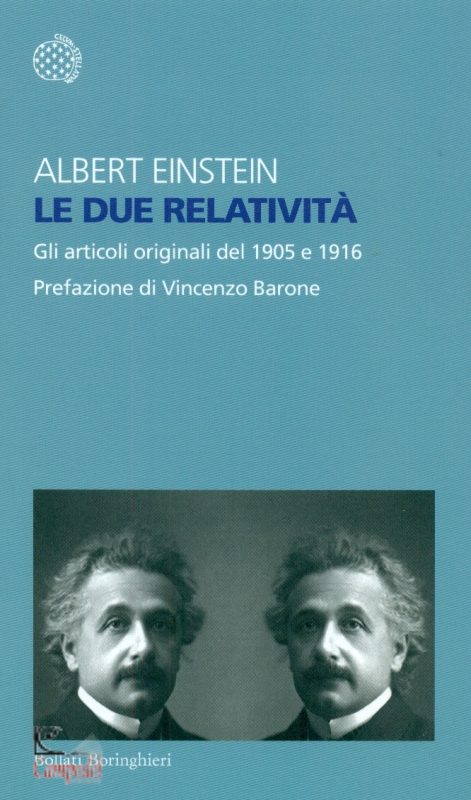 Le idee proposte in quegli scritti originali, all'inizio del Novecento - orologi che rallentano il loro corso, spazi che si deformano, raggi luminosi che si piegano - non sono più appannaggio di pochi, sono a tutti gli effetti parte integrante della nostra vita. Pochissimi scienziati potrebbero vantare un primato simile. Che un lascito così imponente sia stato concepito in poche pagine, in due soli articoli scientifici, è poi doppiamente notevole, così come è quasi incredibile che ancora oggi - a distanza di un secolo! - nelle università di tutto il mondo si insegni la teoria einsteiniana sulla falsariga di quei due articoli originali, gli stessi che vengono proposti qui in traduzione italiana, assieme alla prefazione esplicativa di Vincenzo Barone. | |