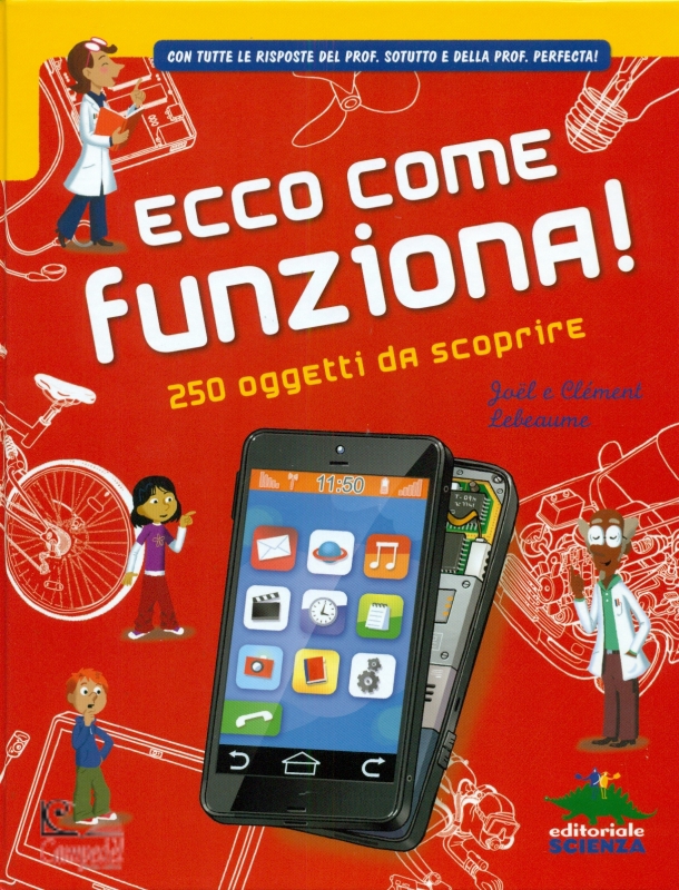Ogni giorno entriamo in contatto e utilizziamo decine e decine di oggetti, dal computer al forno micoonde, dalla sveglia alla fotocamera digitale. Li sappiamo usare, ma riusciamo veramente a capire come funzionano? Per fortuna che ci sono Tina e Teo, due ragazzi molto curiosi che fanno al Prof. Perfecta e al Prof. Sotutto, due scienziati sapientoni, un'infinità di domande sugli oggetti più diversi. Il libro infatti spiega sinteticamente come funzionano 250 oggetti, apparecchi, macchine e mezzi di ogni tipo: il computer, il forno a microonde, il cellulare, l'i-pod, il distributore automatico, la gru, la scala mobile, il camion dei vigili del fuoco, il GPS, l'elicottero, la navetta spaziale... e moltissimi altri ancora! Diviso in 4 sezioni (la casa, la città, i trasporti e gli hobby) il libro si avvale oltre che dei testi, di diagrammi, fotografie, divertenti illustrazioni, boxini contenenti aneddoti, curiosità, che aiutano a guardare l'oggetto da prospettive diverse (scientifica, tecnologica, storica ecc.). In fondo al libro si trova un glossario con un indice con un centinaio di parole relative 15.11 03/02/2016alla scienza e alla tecnologia. Età di lettura: da 9 anni. | |