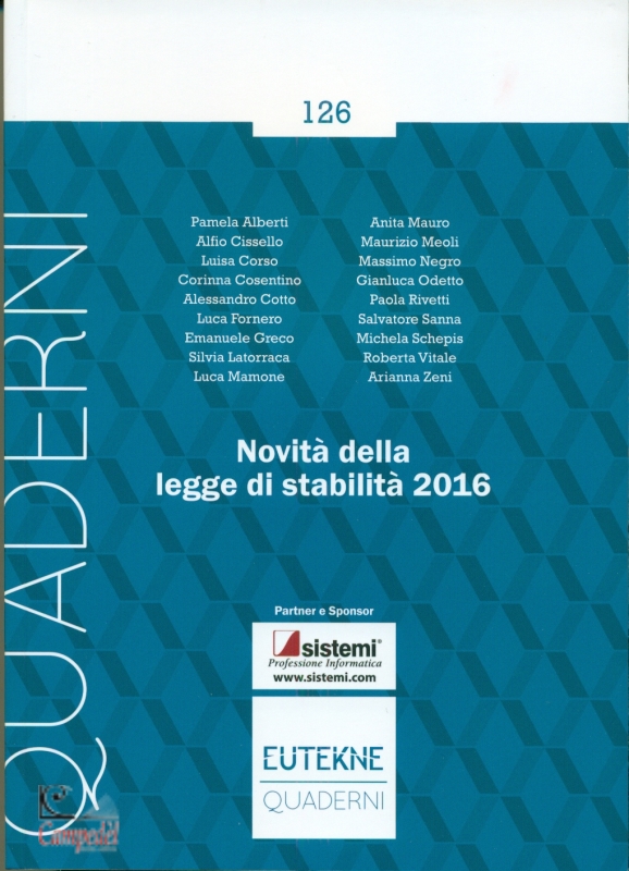 Il Quaderno analizza le novitą introdotte dalla legge di stabilitą, in vigore dall’1.1.2016, offrendo un quadro delle principali misure adottate in materia di agevolazioni fiscali, imposizione diretta e indiretta, IRAP e tributi locali, ma anche in ambito giuslavoristico.