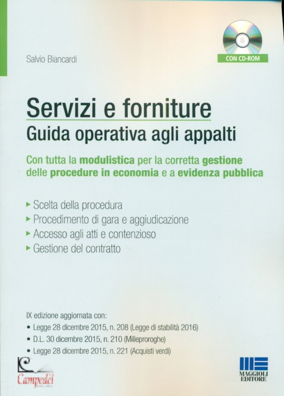 ario stimato superiore ad 1 milione di euro) nonché alla legge sul Green Public Procurement (che ha reso obbligatori per le Amministrazioni pubbliche gli Acquisti verdi), intende fornire agli operatori che si occupano di appalti di servizi e forniture una guida per il corretto svolgimento delle procedure di gara in linea con la disciplina vigente, alla luce delle pronunce giurisprudenziali e delle circolari interpretative più recenti.