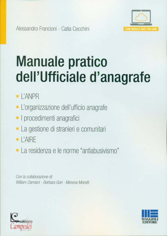 L'acquisto del Manuale include l'accesso alla Banca Dati on line "Manuale pratico dell’Ufficiale d'anagrafe": un ricco archivio documentale di normativa, prassi, giurisprudenza e modulistica, con aggiornamenti fino al 31 dicembre 2016 Guida pratica a tutti gli adempimenti necessari per il passaggio alla nuova Anagrafe Nazionale, la quarta edizione del manuale più completo per l'Ufficiale d'Anagrafe è stata rinnovata e arricchita nei contenuti, in particolare in materia di: gestione di stranieri e cittadini comunitari; procedure per la residenza in tempo reale; gestione delle nuove norme anti-abusivismo; gestione associata dell'Ufficio Anagrafe con schema di convenzione; applicazione delle nuove regole sui toponimi e nn. civici con riferimento agli obblighi di certificazione imposti dal progetto ANNCSU. Assoluta novità di questa edizione 2016 è il capitolo dedicato agli aspetti organizzativi e gestionali dell'Ufficio Anagrafe. | |