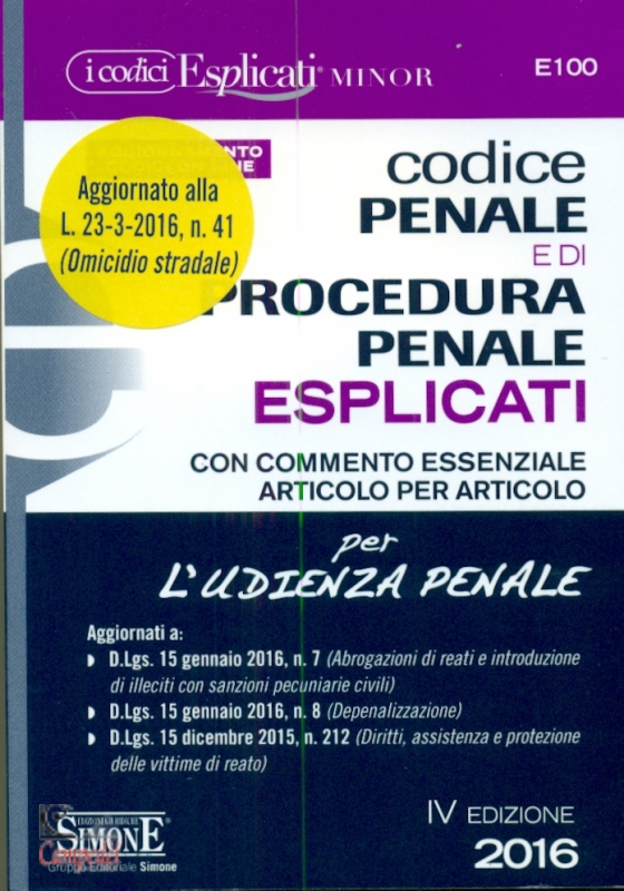 Con commento essenziale articolo per articolo (per l'udienza penale) aggiornato L.23-3-2016 n.41