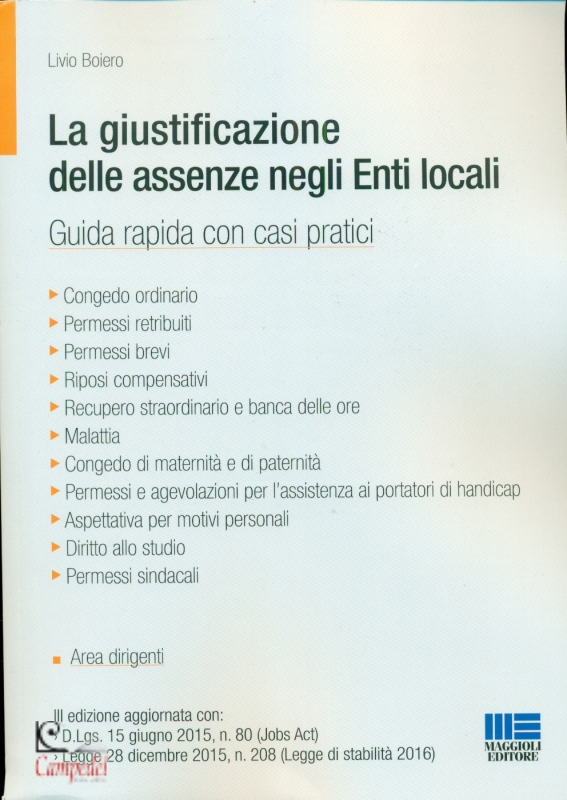 Questo volume unifica la stratificata disciplina delle assenze in un "testo unico" in cui tutte le tipologie di assenze sono ordinate e inquadrate grazie al preciso richiamo alla normativa e alla prassi di riferimento. L'esemplificazione di oltre 200 casi pratici, sviluppati attraverso la formula della risposta al quesito, offre un ricco ventaglio di fattispecie agevolmente consultabili. Per la sua organizzazione interna, l'opera risulta essere un pratico vademecum, indispensabile pe r chi autorizza le assenze e per i dipendenti e i dirigenti che ne usufruiscono. | |