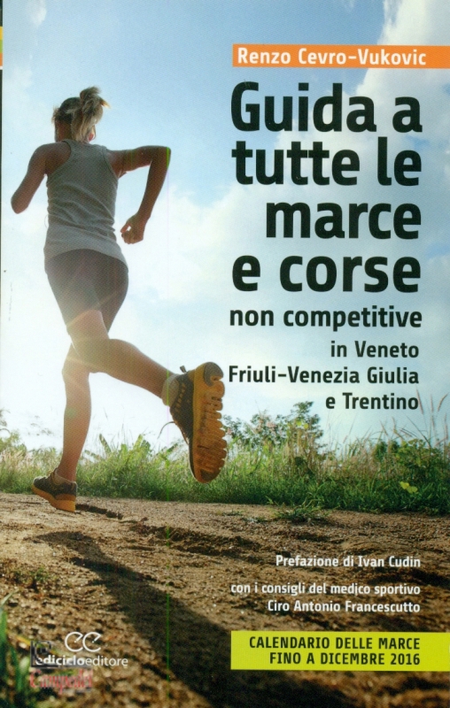 Una guida pratica e maneggevole alle marce. Con i consigli per i neofii, le indicazioni del medico sportivo e il calendario delle corse fiono a dicembre 2016. La gente vuole star bene e ha ormai introiettato il messaggio che un’attività sportiva, anche blanda ma continua, porta a un benessere fiico e psichico: le marce sono un modo facilmente accessibile per ottenere questo obiettivo. Ci permettono infatti di tornare a contatto con la natura, ci mettono in movimento spinti dal l’esempio contagioso di altre centinaia di persone, ci fanno conoscere con i loro percorsi le bellezze storico-artistiche delle nostre regioni, e tutto questo in modo molto economico. Questa piccola e maneggevole guida offe un esauriente calendario delle marce programmate per i prossimi mesi (maggiodicembre) in Veneto, Friuli, Trentino. Propone inoltre un vademecum che informa su come queste manifestazioni siano organizzate e su quali siano le loro caratteristiche principa li. Prefazione di Ivan Cudin, atleta di ultramaratone e campione europeo delle 24 ore. Con i consigli del medico sportivo Ciro Antonio Francescutto, ideatore dei progetti “Curati con stile” e “Parco metabolico”. Ha dato il via a dei gruppi di camminatori notturni che si organizzano su Facebook, “Quelli della notte”. | |