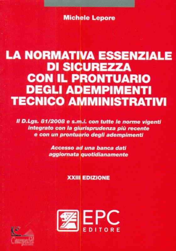 La normativa essenziale di sicurezza con il prontuario degli adempimenti tecnico amministrativi Il D.Lgs. 81/2008 e s.m.i. con tutte le norme vigenti integrato con la giurisprudenza più recente e con un prontuario degli adempimenti. Accesso ad una banca dati aggiornata quotidianamente Una guida completa per la corretta e veloce consultazione di tutti i principali provvedimenti in materia di salute e sicurezza sul lavoro. La ricerca di provvedimenti è facilitata da un indice analitico che permette di individuare velocemente tutte le norme. Il volume è arricchito da un prontuario degli adempimenti essenziali di natura tecnico amministrativa. Tutta la materia è divisa in 77 voci nelle quali vengono evidenziati gli obblighi, le periodicità, i riferimenti normativi, gli enti preposti, i soggetti obbligati, le sanzioni e la giurisprudenza relativa più recente. Esclusivamente per gli acquirenti del volume una banca dati on-line aggiornata quotidianamente. | |