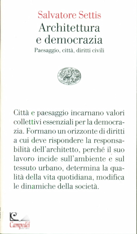 L'architetto è il mero esecutore dei voleri del committente, anche quando vadano contro l'interesse della collettività, o deve mostrarsi attento al bene comune? Sfidare i confini difficili fra città e paesaggio, decostruire i feticci di un neomodernismo conformista (il grattacielo e la megalopoli) e le sue conseguenze (i nuovi ghetti urbani) vuol dire tentare il recupero della dimensione sociale e comunitaria dell'architettura. In un paesaggio inteso come teatro della democrazia, l'impegno etico dell'architetto può contribuire al pieno esercizio dei diritti civili.Diritto alla città, diritto alla natura, diritto alla cultura meritano questa scommessa sul nostro futuro. | |