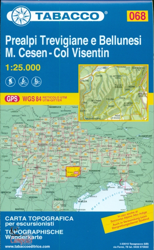| Carte topografiche delle Dolomiti, Alpi e preAlpi Topographische Wanderkarte GPS WGS Reticolo UTM |