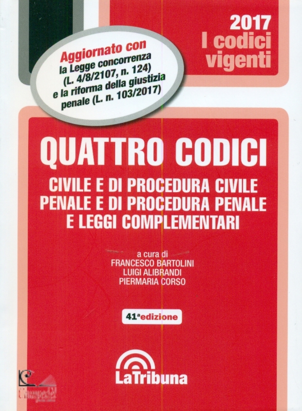 | La collana "i codici vigenti" offre un codice completo, particolarmente tempestivo negli aggiornamenti ed efficace nelle annotazioni, destinato in special modo alla attivitą professionale. |