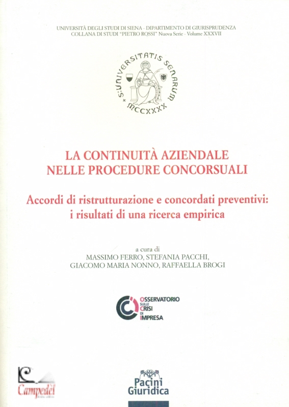 L’OCI – Osservatorio sulle Crisi di Impresa (www.osservatorio-oci.org) è un’associazione culturale di magistrati che si occupano della materia concorsuale. Oltre ad organizzare in rete un dibattito permanente tra giuristi e operatori della crisi d’impresa, come gruppo di studio interdisciplinare ha promosso ricerche scientifiche ed empiriche sull’insolvenza, gli indebitamenti e le difficoltà finanziarie e i relativi processi, mettendo a confronto i dati dell’interpretazione giuridica e quelli economico aziendali, in collaborazione con docenti di varie Università. I rapporti sono pubblicati come volumi autonomi, oggetto di riflessione periodica in seminari dei magistrati, di merito e legittimità e convegni con professionisti. Il presente volume contiene il rapporto dell’ultima di queste ricerche condotte dall’OCI con docenti universitari delle Università di Bologna e Pisa e con il prezioso supporto della Formazione decentrata della Toscana della Scuola Superiore della Magistratura, dell’Università d i Siena e del Presidente della Sezione Fallimentare del Tribunale di Lecce. La ricerca ha riguardato i concordati e gli accordi di ristrutturazione dei debiti delle regioni di Puglia e Toscana nel periodo tra l’1 gennaio 2013 e i primi cento giorni del 2016 e i suoi risultati sono stati dibattuti in due pubblici convegni gemellati, che si sono tenuti il 13-14 maggio 2016 a Lecce e il 17-18 giugno a Siena, e che hanno trattato rispettivamente i temi della continuità aziendale nelle procedure concorsuali conservative e della continuità aziendale nelle procedure concorsuali liquidatorie. | |