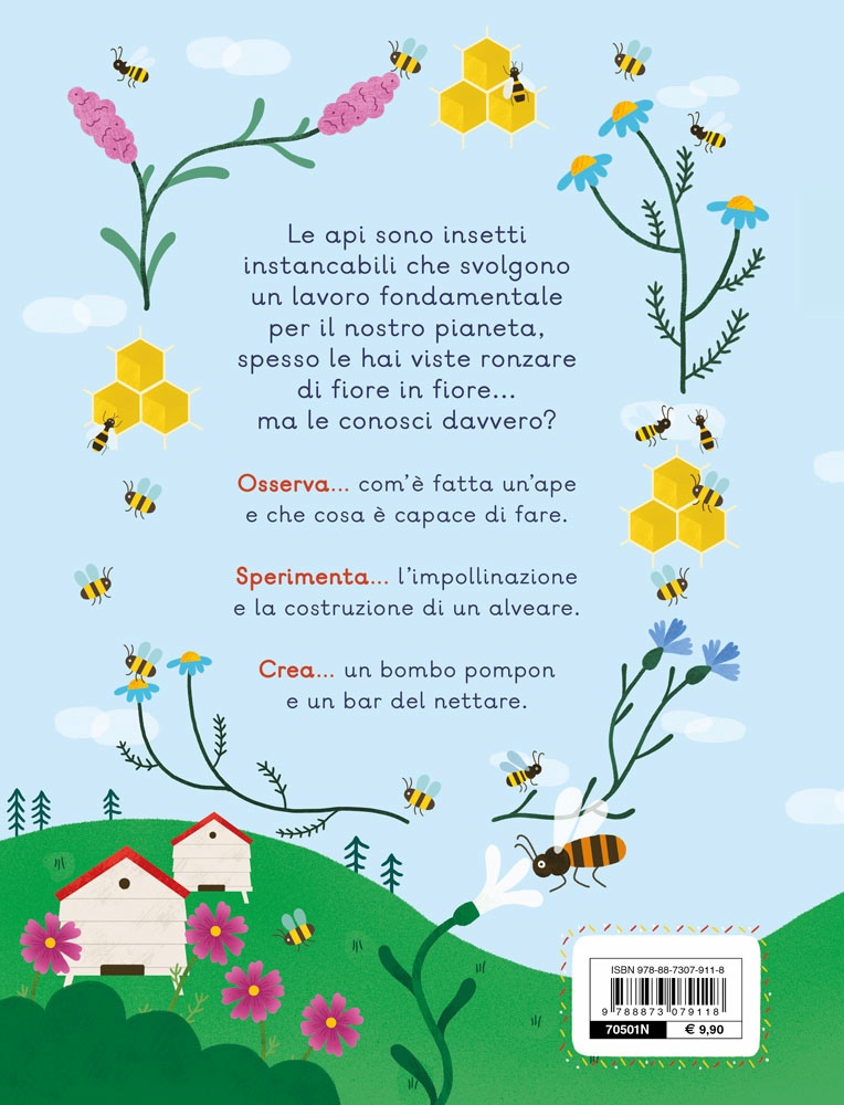 | Un libro con tante attività e semplici esperimenti per conoscere le api e osservarle da vicino: prova a comunicare danzando come loro, apri un bar del nettare, fatti servire e riverire come se fossi un'ape regina. Scopri come si costruisce un alveare, che cosa fa un apicoltore, che cos'è l'impollinazione e tanto altro ancora. | |