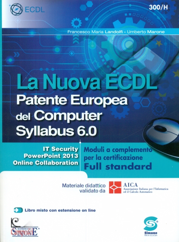 La Nuova ECDL Patente Europea del Computer Syllabus 6.0 - Moduli a completamento per la certificazione Full standard IT Security - PowerPoint 2013 - Online Collaboration - Materiale didattico validato da AICA - Libro misto con estensione on line La ECDL Foundation ha modificato, alcuni anni fa, la procedura per il conseguimento della Patente Europea del Computer (ECDL). Ora esistono due diversi livelli di certificazione: la ECDL Base e la ECDL Full Standard. Per conseguire la ECD L Base si dovranno sostenere quattro esami, ciascuno dedicato ad uno dei seguenti Moduli: — Computer Essentials – Concetti di base del computer; — On Line Essentials – Concetti di base della rete; — Word Processing – Elaborazione testi; — Spreadsheet – Fogli elettronici. Per il conseguimento della ECDL Full Standard è necessario sostenere, oltre quelli previsti per la ECDL Base, altri tre esami su altrettanti Moduli (affrontati nel presente volume): — It Security – Sicurezza informatica; — Presentation – Strumenti di presentazione; — Online Collaboration – Collaborazione in Rete. Tutti i moduli trattati nel volume sono aggiornati al nuovo Syllabus 6.0 emanato nel 2018. Alcuni paragrafi sono contrassegnati dall’icona : ciò significa che per quell’argomento è disponibile un video esplicativo sull’estensione online, raggiungibile sul sito www.simonescuola.it. Nelle sezioni riservate alle verifiche è presente l’icona Altre esercitazioni on line : collegandosi al suddetto sito, sarà dunque possibile scaricare ulteriori esercitazioni pratiche relative all’argomento trattato. | |