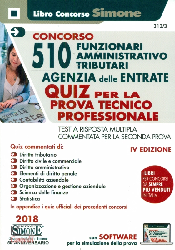 Concorso 510 Funzionari Amministrativo Tributari Agenzia delle Entrate - Quiz per la prova tecnico professionale Test a risposta multipla commentata per la seconda prova - Quiz commentati di: • Diritto tributario • Diritto civile e commerciale • Diritto amministrativo • Elementi di diritto penale • Contabilità aziendale • Organizzazione e gestione aziendale • Scienza delle finanze • Statistica - In appendice i quiz ufficiali dei precedenti concorsi - con SOFTWARE per la simulazione della prova Nella Gazzetta Ufficiale del 17 aprile 2018, n. 31 è stato pubblicato l’avviso relativo al bando per la selezione di 510 Funzionari, con contratto a tempo indeterminato (terza area funzionale, fascia retributiva F1, attività amministrativo tributaria) nell’Agenzia delle Entrate. La selezione prevede il superamento di una seconda prova: la prova oggettiva tecnico-professionale che mira ad accertare le capacità tecnico-professionali dei candidati. Essa consisterà nella soluzione di quesiti a risposta multipla sulle seguenti materie: — diritto tributario; — diritto civile e commerciale; — diritto amministrativo; — elementi di diritto penale; — contabilità aziendale; — organizzazione e gestione aziendale; — scienza delle finanze; — elementi di statistica. Aggiornato alle ultime novità in materia fiscale e amministrativa, il testo offre al candidato una seri e di quesiti a risposta multipla con quattro opzioni di risposta, con soluzioni commentate, su tutte le materie la cui conoscenza è richiesta dal bando. In aggiunta il candidato troverà in Appendice quattro batterie di quiz assegnate dal 2008 al 2015 ai concorsi dell’Agenzia delle Entrate per lo stesso profilo professionale. Il volume, dunque, rappresenta un sussidio utile sia per esercitarsi in vista della prova scritta sia per ripassare velocemente le diverse discipline che saranno oggetto anche della verifica orale. Contribuisce a rendere quest’opera uno strumento efficace il software, utilizzabile on line, strutturato in modo da permettere di esercitarsi con tutti i quiz presenti nel testo e simulare la prova del concorso. Per completare la preparazione si consiglia il volume 313/2 – 510 Funzionari amministrativo tributari – Manuale completo per la preparazione alla prova oggettiva tecnico-professionale, che propone una trattazione approfondita ed aggiornata di tutte le discipline previste dal bando di concorso. | |