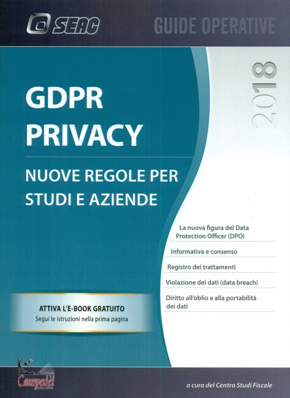 GDPR PRIVACY: nuove regole per studi e aziende Il testo, in particolare, dopo un primo inquadramento generale della materia, analizza, tra le altre, le seguenti tematiche: figure privacy (titolare, responsabile, data protection officer, ecc.), adempimenti privacy (informativa, consenso, registri delle attivitą di trattamento, analisi del rischio, etc.), diritti dell’interessato (accesso, rettifica, portabilitą dei dati, diritto all’oblio).i. | |