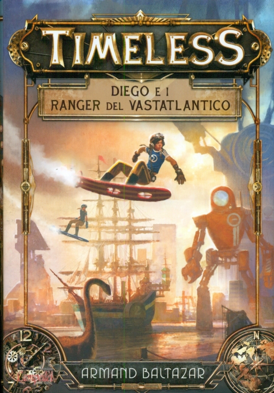 Diego e i ranger del Vastatlantico. Timeless Armand Baltazar pubblicato da Il Castoro Una collisione temporale ha cambiato ogni cosa. I continenti si sono rimodellati, grandi territori sono sprofondati dando vita a un nuovo grande oceano, il Vastatlantico. Anche il tempo si è frantumato. I dinosauri avanzano accanto alle mandrie di bufali e giganteschi robot navigano le acque insieme a battelli a vapore. Il passato, il presente e il futuro, rimescolati. Timeless. Diego Ribera, 13 anni, vive a New Chicago. Suo padre, capo ingegnere della città, è stato rapito dagli Aeternum, un gruppo di ribelli che vuole creare una seconda collisione per ripristinare l'ordine. Ma Diego ha il dono speciale di vedere come funzionano le cose, e insieme a un gruppo di valorosi amici sarà pronto a mettere in gioco tutte le sue forze per salvare suo padre e la fragile pace dell'umanità intera. Età di lettura: da 11 anni. | |