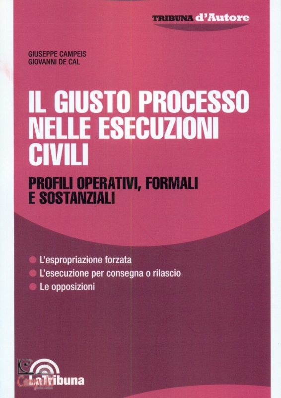 Il giusto processo nelle esecuzioni civili Profili operativi, formali e sostanziali Pubblicato da La Tribuna Giovanni De Cal Giuseppe Campeis Questo volume si pone l’obiettivo di costituire per gli operatori del diritto (avvocati, magistrati, professionisti delegati, ufficiali giudiziari) uno strumento utile ed attuale, che consenta un’azione consapevole e corretta sia dal punto di vista processuale che da quello sostanziale. L’Opera, attraverso una trattazione di taglio manualistico, si fa apprezzare per l’esemplare chiarezza dell’esposizione e l’esaustività dei contenuti. Vengono infatti prese in considerazione tutte le tematiche connesse alle esecuzioni civili, fra cui segnaliamo: i principi regolatori dell’esecuzione forzata e dell’espropriazione forzata; l’espropriazione mobiliare presso il debitore; l’espropriazione presso terzi; l’espropriazione immobiliare; la delega ai professionisti nell’espropriazione immobiliare; l’esecuzione per consegna e rilascio; l’esecuzione di obblighi di fare e di non fare; le opposizioni; la sospensione e l’estinzione del processo esecutivo, il regolamento delle spese e il risarcimento dei danni; le possibili forme di tutela giurisdizionale dei soggetti interessati dal processo esecutivo al di fuori del sistema delle opposizioni. | |