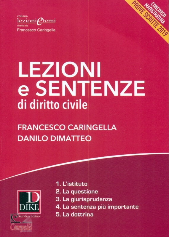 Lezioni e sentenze di diritto civile 2018 di: Francesco Caringella, Danilo Dimatteo Pubblicato da DIKE giuridica segnala e approfondisce le questioni che maggiormente agitano dottrina e giurisprudenza focalizza l’attenzione sulle novitą normative e giurisprudenziali che hanno toccato i punti nevralgici del diritto comune esamina le novelle legislative in tema di consenso informato, patto marciano, danno biologico e morale, intese anticoncorrenziali, biotestamento, privacy e oblio analizza la giurisprudenza dell’ultimo biennio riservando un particolare approfondimento alle questioni esaminate dalle Sezioni Unite o oggetto di un acceso dibattito giurisprudenziale richiama con attenzione le riflessioni pił significative espresse dai massimi esponenti della dottrina | |