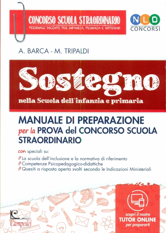 Sostegno nella scuola dell'infanzia e primaria. Manuale di preparazione per la prova del concorso scuola straordinario. Con tutor online Con speciali su: La scuola dell’inclusione e la normativa di riferimento Competenze psicopedagogiche-didattiche Quesiti a risposta aperta svolti secondo le indicazioni Ministeriali by Alessandro Barca - Mariella Tripaldi pubblicato da Nel Diritto Concorsi L'Inclusione, realtà tanto auspicata, è la vera sfida che la Scuola odierna si po ne; occorrono, pertanto, professionalità altamente qualificate in grado di soddisfare i bisogni speciali e specifici di cui ogni alunno è portatore. Una completa e compiuta fusione di conoscenze e competenze è quello che si chiede oggi alla nuova generazione di docenti che si preparano ad affrontare il nuovo Concorso a cattedra 2018, anche alla luce dei contenuti della Legge n. 107 del 13 luglio 2015, che ha riformato il Sistema Nazionale di Istruzione e Formazione: non è, dunque, solo una questione d i contenuti, ma si lavora affinché il reclutamento sia capace di individuare, prima di ogni altra caratteristica, l'autentica attitudine all'insegnamento nonché le competenze socio-psico-pedagogico-didattiche essenziali a rimuovere gli eventuali ostacoli che possono minare il sereno evolversi del percorso formativo di ciascun alunno. Alla luce di queste premesse, questo manuale, dedicato al Sostegno, ha l'ambizione di proporsi come uno strumento per la preparazione al concorso completo, essenziale e versatile; un valido mezzo per delineare in modo esaustivo il profilo del futuro docente specializzato per le attività di sostegno. Il volume risulta essere composto da tre Parti strutturate in varie Sezioni, ognuna delle quali contiene diversi capitoli corredati da sintesi, mappe, grafici, domande stimolo e approfondimenti bibliografici nonché approfondimenti legislativi/normativi fedeli alle indicazioni del bando ufficiale (pubblicato in GU n. 89 del 09/11/2018). Nello specifico: Parte I: La scuola dell'Inclusione e la normativa di riferimento. In questa macroarea i contenuti, scelti e compendiati in ossequio all'intero programma d'esame, così come indicato nel bando di concorso, permettono al fruitore del testo di acquisire un solido bagaglio di conoscenze, in un numero ridotto di pagine, visti i tempi ristretti del concorso. Parte Il: Competenze Psicopedagogico-didattiche. Arricchite da analisi dottrinali in campo psicologico, pedagogico-didattico e da spunti problematici affrontati in modo critico e didatticamente efficace, le varie sezioni offrono contributi significativi per la realizzazione di percorsi didattici inclusivi per tutti gli alunni con Bisogni Educativi Speciali, nonché la conoscenza dei processi cognitivi annessi all'apprendimento, dei disturbi del neurosviluppo e delle principali psicopatologie dell'età evolutiva. Parte III: Strumenti esercitativi. Quesiti a risposta aperta inerenti la trattazione articolata di tematiche disciplinari, didattiche e metodologiche, tesi all'accertamento delle conoscenze e delle competenze didattico-metodologiche in relazione alle discipline oggetto di insegnamento e svolti secondo le Indicazioni Ministeriali, sono un valido aiuto per esercitarsi ed autovalutarsi. Con il nostro Tutor on line potrai effettuare approfondimenti e verificare la tua preparazione, misurandoti con le domande a risposta aperta, come previsto dal bando di concorso, scaricabili online con la password reperibile nell'ultima pag ina del volume. | |