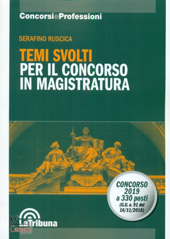 Temi svolti per il concorso in magistratura concorso per la magistratura 2019 Serafino Ruscica Pubblicato da La Tribuna La raccolta di temi è stata concepita in vista delle prove scritte per i concorsi in magistratura ordinaria ed amministrativa. Vengono poste all'attenzione del lettore le più attuali ed interessanti questioni dottrinali e giurisprudenziali di diritto civile, penale ed amministrativo. Gli elaborati, svolti da magistrati ordinari in tirocinio con il coordinamento del Cons. Serafino Ruscica,si propongono di dare continuità ad una tradizione che ormai da anni colleziona successi centrando con frequenza statistica le tracce estratte nelle singole prove di concorso. Ogni elaborato è poi corredato da uno schema logico - riepilogativo della trattazione utile per il ripasso finale a pochi giorni dallo svolgimento delle prove scritte. | |