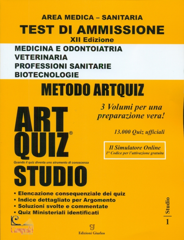 Artquiz studio. Test di ammissione a: medicina, odontoiatria, veterinaria, professioni sanitarie, biotecnoloolge. Area medica-sanitaria. Ediz. illustrata by Arturo Giurleo pubblicato da Giurleo Arturo Raccolta di quiz ufficiali e inediti organizzati per indice dettagliato con elencazione consequenziale dei quesiti svolti e commentati, per i Test di ammissione alle Facoltą di Medicina, Veterinaria e Odontoiatria, per i Corsi di Laurea triennali dell'Area Sanitaria e per il Corso di Laure a in Biotecnologie. | |