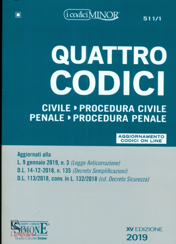 Civile - Procedura Civile - Penale - Procedura Penale - Aggiornati alla L. 9 gennaio 2019, n.3