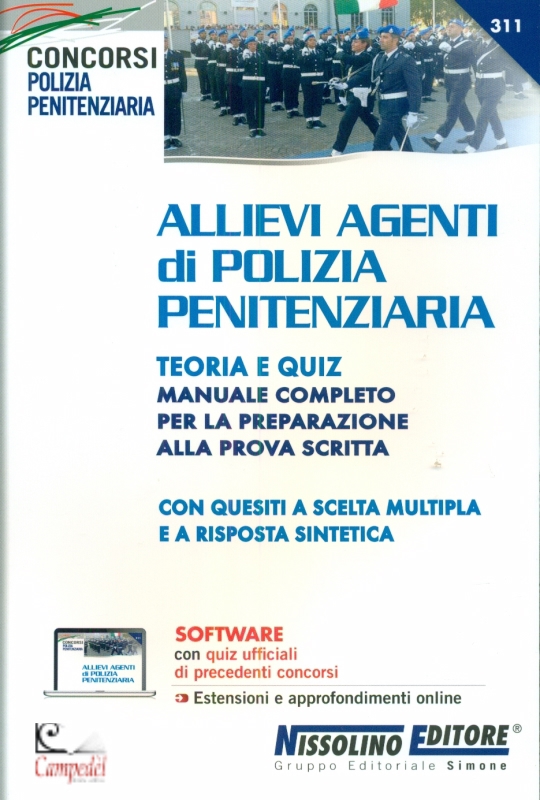 Allievi agenti di polizia penitenziaria. Teoria e Quiz. Manuale completo per la preparazione alla prova scritta. Con espansione online. Con software di simulazione Pubblicato da Nissolino editore – Gruppo Simone Collana: Concorsi polizia penitenziaria Un completo ed aggiornato manuale di preparazione ai concorsi per il reclutamento di Allievi Agenti di Polizia Penitenziaria, valido sia per quelli riservati a VFP1 e VFP4, sia per quelli aperti anche ai civili. Il volume risulta particolarmente utile per il superamento della prova d'esame scritta, che consiste in una serie di domande, a risposta sintetica o a scelta multipla, riguardanti argomenti di cultura generale e materie oggetto dei programmi della scuola dell'obbligo. Questi i contenuti trattati: Italiano; Matematica (Aritmetica, Algebra, Geometria); Scienze; Geografia; Storia; Educazione civica. Per ciascuna disciplina si propongono sia una trattazione teorica, per un agevole ripasso, sia test di verifica a risposta multipla, con quiz ufficiali già somministrati ai precedenti concorsi. Disponibile anche un questionario di cultura generale, con quiz a risposta aperta già completi di risposte sintetiche. Il volume è inoltre provvisto di estensioni online per ulteriori approfondimenti disciplinari e di software (a cui si accede tramite QR-Code) con migliaia di quiz tratti dalle banche-dati ufficiali di precedenti concorsi, per infinite esercitazioni e simulazioni della prova d'esame. | |
