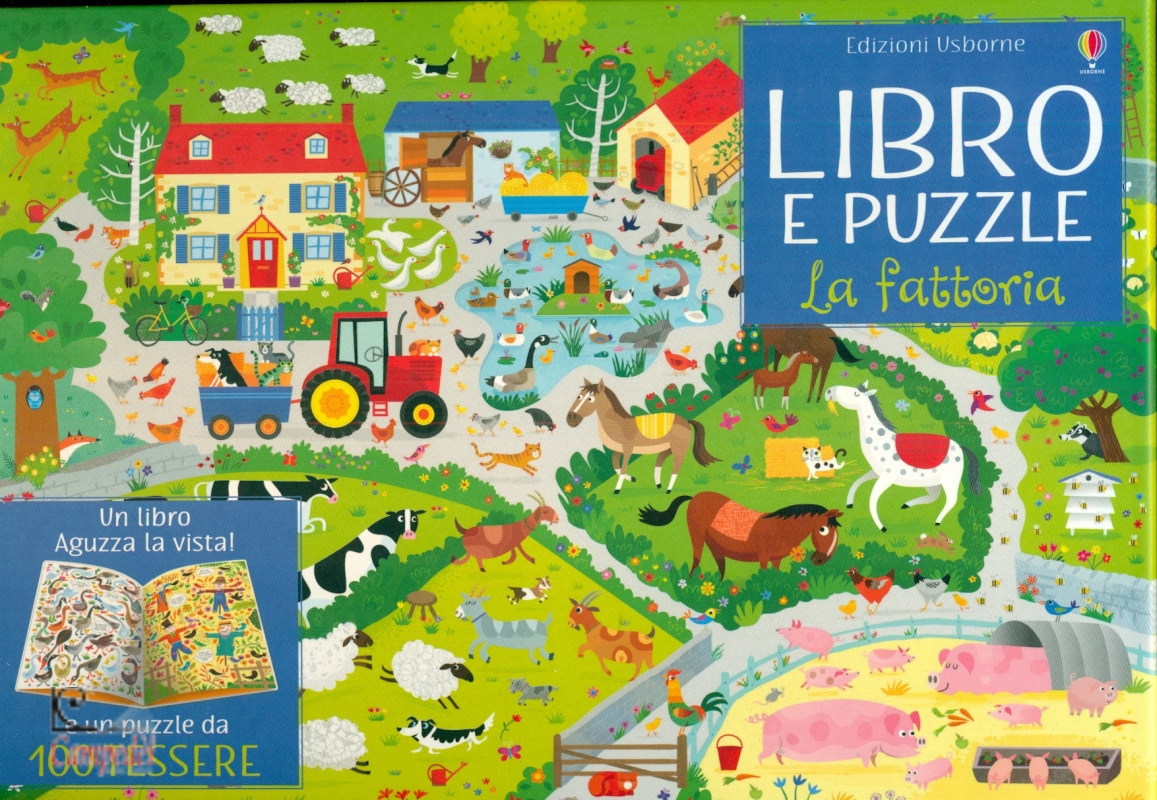 puzzle da 100 tessere per creare una vivace scenetta e un libro pieno di particolari da individuare