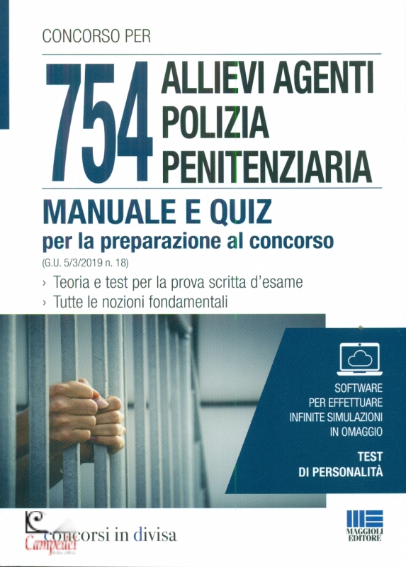 polizia penitenziaria 754 allievi polizia penitenziaria Manuale e quiz per la preparazione al concorso Autori Autori Vari Editore Maggioli Editore Collana:Concorsi in divisa › Teoria e test per la prova scritta d’esame › Tutte le nozioni fondamentali SOFTWARE PER EFFETTUARE INFINITE SIMULAZIONI IN OMAGGIO TEST DI PERSONALITÀ Il manuale si indirizza a quanti partecipano al concorso pubblico per 754 allievi agenti del Corpo di polizia penitenziaria, pu bblicato sulla Gazzetta Ufficiale del 5 marzo 2019, n.18. Il testo propone innanzitutto le nozioni essenziali per prepararsi alla prova scritta d’esame, vertente su una serie di domande a risposta sintetica o a scelta multipla su argomenti di cultura generale e sulle materie previste nei programmi della scuola dell’obbligo. L’opera offre, infatti, una trattazione completa, chiara e aggiornata delle seguenti materie: Letteratura italiana, Grammatica italiana, Storia, Storia dell’arte, Geog rafia, Educazione civica, Matematica, Geometria, Discipline scientifiche. Per ciascuna materia, oltre a una sintesi dei principali argomenti d’esame, il testo propone una raccolta di quesiti per verificare il grado di preparazione raggiunto e allenarsi alla prova scritta. Il volume offre anche una parte di Informatica, una trattazione schematica ma esauriente e seguita da relativi quesiti per attestare il livello di preparazione nell’uso di apparecchiature e applicazioni. Nel testo sono in oltre previste batterie di quesiti a risposta multipla in lingua inglese e francese: attraverso il commento alle risposte esatte si ripercorrono le principali regole delle due lingue. Nella sezione online raggiungibile tramite il codice riportato in fondo al volume, disponibile su https://www.maggiolieditore.it/approfondimenti, è presente un capitolo dedicato ai principali test di personalità, con indicazioni su come affrontarli in vista della prova attitudinale. Nella sezione online è anche dis ponibile un software per prepararsi alle possibili domande a scelta multipla della prova scritta d’esame ed effettuare così infinite simulazioni. Per le sue caratteristiche, il volume costituisce quindi uno strumento mirato e indispensabile per acquisire o ripassare in poco tempo tutte le nozioni fondamentali per l’iter concorsuale. | |