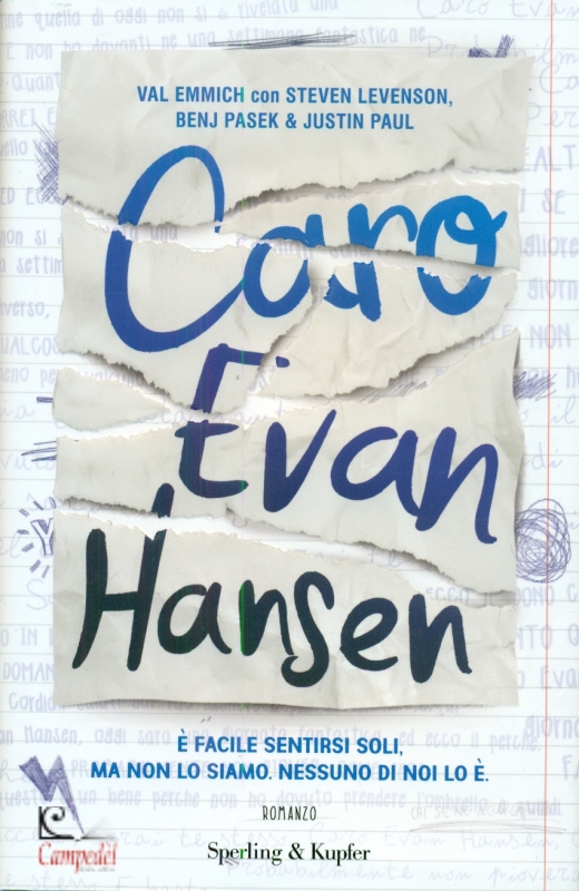 Caro Evan Hansen by Val Emmich - Steven Levenson - Benj Pasek - Justin Paul pubblicato da Sperling & Kupfer Collana: Pandora Timido e solitario, Evan Hansen non è esattamente l'anima della festa. Così, per sopravvivere al suo ultimo anno di liceo, ha deciso di seguire il consiglio di scrivere lettere incoraggianti a se stesso. Quando, però, una di queste lettere arriva nelle mani sbagliate, a Evan si presenta l'occasione della vita. Per coglierla deve solo assecondare un equivoco, e fingere che il suo enigmatico compagno di scuola Connor Murphy, appena suicidatosi, fosse in segreto il suo migliore amico. All'improvviso, Evan ha uno scopo. E un sito web. La sua ansia paralizzante sembra dissolta. E sicuro di sé e popolare. Adesso è "Evan Hansen". Non è più invisibile per Zoe, la ragazza dei suoi sogni, e i genitori di Connor lo accolgono nel disperato tentativo di sapere di più sul figlio perduto. Evan sa che quello che sta facendo è sbagliato, ma tutta la storia che ha messo in piedi sta davvero aiutando delle persone. Compreso lui. Grazie a una bugia, la sua vita è cambiata e ora sente di essere finalmente parte di qualcosa. Ma tutto ha un prezzo. E quando la verità minaccia di emergere, Evan si trova a dover fronteggiare di nuovo il suo peggior nemico: se stesso. Dai creatori del musical "Dear Evan Hansen", arriva in libreria il romanzo ispirato al successo di Broadway. | |