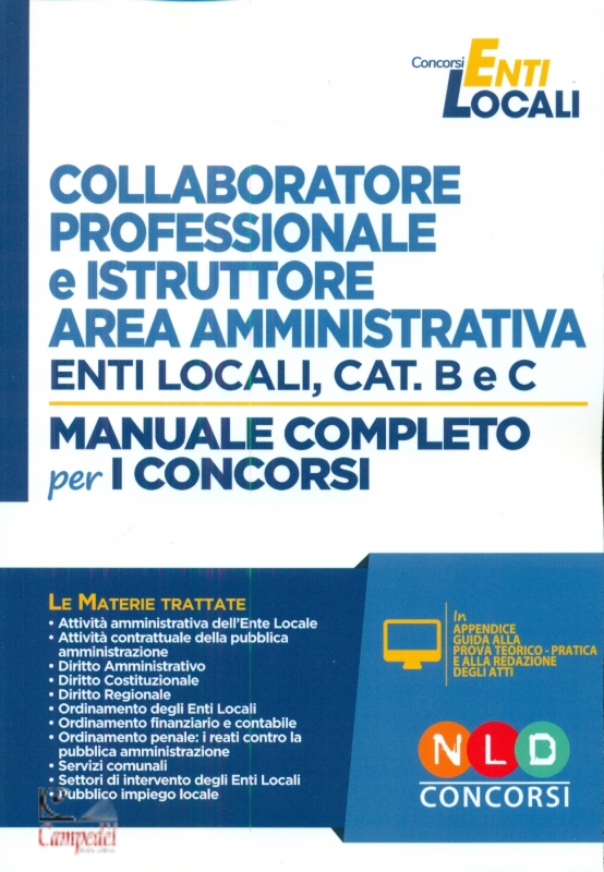 Collaboratore professionale e istruttore area amministrativa. Enti locali. Categoria B e C. Manuale completo Editore: Nld Concorsi Collana: Concorsi Enti Locali Il manuale, Collaboratore Professionale e Istruttore - Area Amministrativa Enti Locali Categorie B e C, si presenta come una guida per apprendere gli elementi fondamentali delle discipline giuridiche poste alla base del concorso negli enti locali - profilo professionale di “Collaboratore e Istruttore” dell’area amministrativa. L’opera complessiva è strutturata in due “ambiti”: il primo, prettamente teorico e il secondo pratico - operativo. Il Manuale è suddiviso in XI Libri, ciascuno dei quali è dedicato ad una apposita disciplina giuridica: l’opera in questione ha dunque il pregio di racchiudere al suo interno tutte le sfaccettature che interessano l’attività del Collaboratore Professionale. La presente edizione è aggiornata alla: - L. 30 dicembre 2018, n. 145 Bilancio di previsione dello Stato per l'anno finanziario 2019 e bilancio pluriennale per il triennio 2019-2021, Riforma Madia; - L. 9 gennaio 2019, n. 3, Misure per il contrasto dei reati contro la P.A c.d. Spazzacorrotti - D.L. 4 ottobre 2018, n. 113 c.d. Decreto sicurezza A completamento dell'opera la trattazione degli atti amministrativi dell’ente locale, ed una parte nella quale si è ritenuto opportuno indicare le modalità di redazione degli atti amministrativi. E' infatti presente una Guida conclusiva, dove sono riportati alcuni degli atti che interesseranno l’attività dei collaboratori ed istruttori amministrativi. Le Materie trattate - Attività amministrativa dell’Ente Locale - Attività contrattuale della Pubblica Amministrazione - Diritto amministrativo - Diritto Costituzionale - Diritto regionale - Ordinamento degli Enti Locali - Ordinamento finanziario e contabile - Ordinamento penale: I reati contro la pubblica amministrazione - Servizi comunali - Settori di intervento degli Enti Locali - Pubblico impiego locale | |