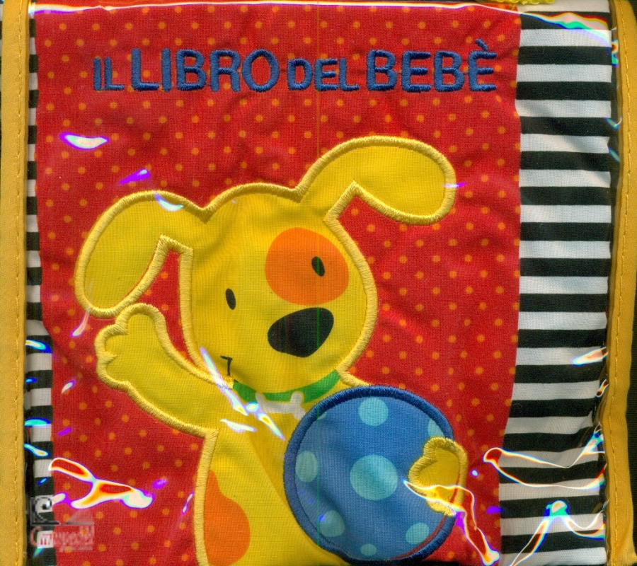 libro di stoffa imbottita con pagine rumorose stimoli visivi tattili inserti di materiali diversi